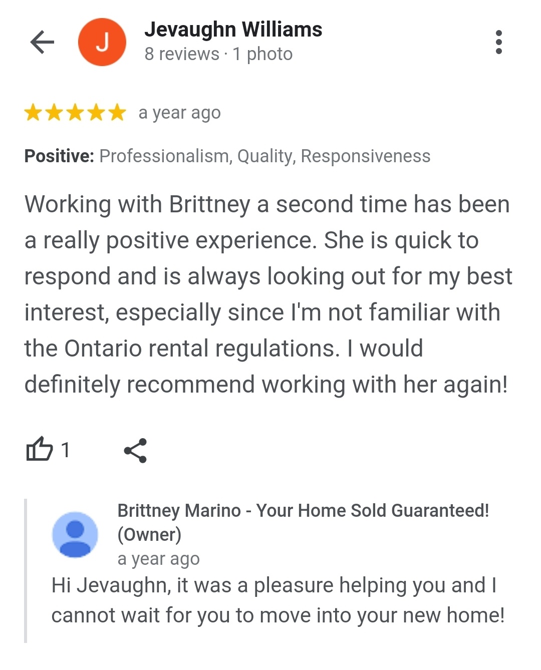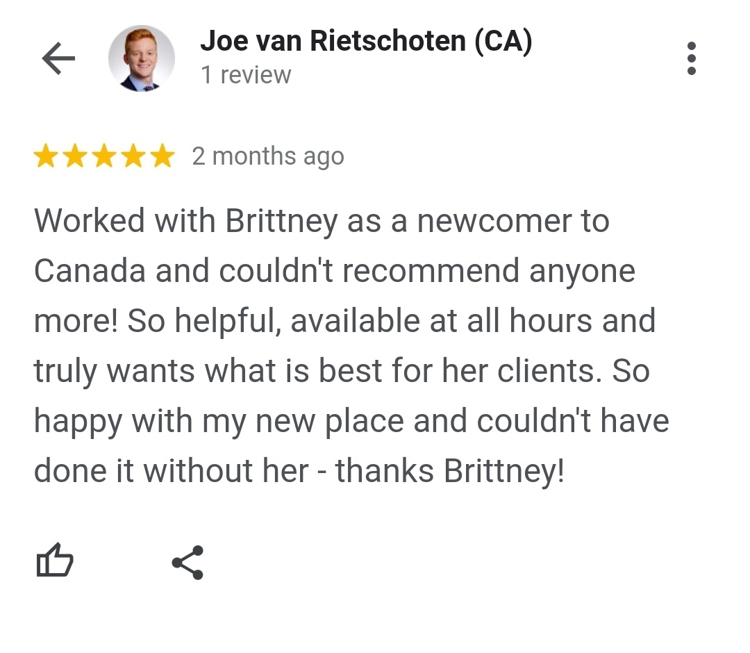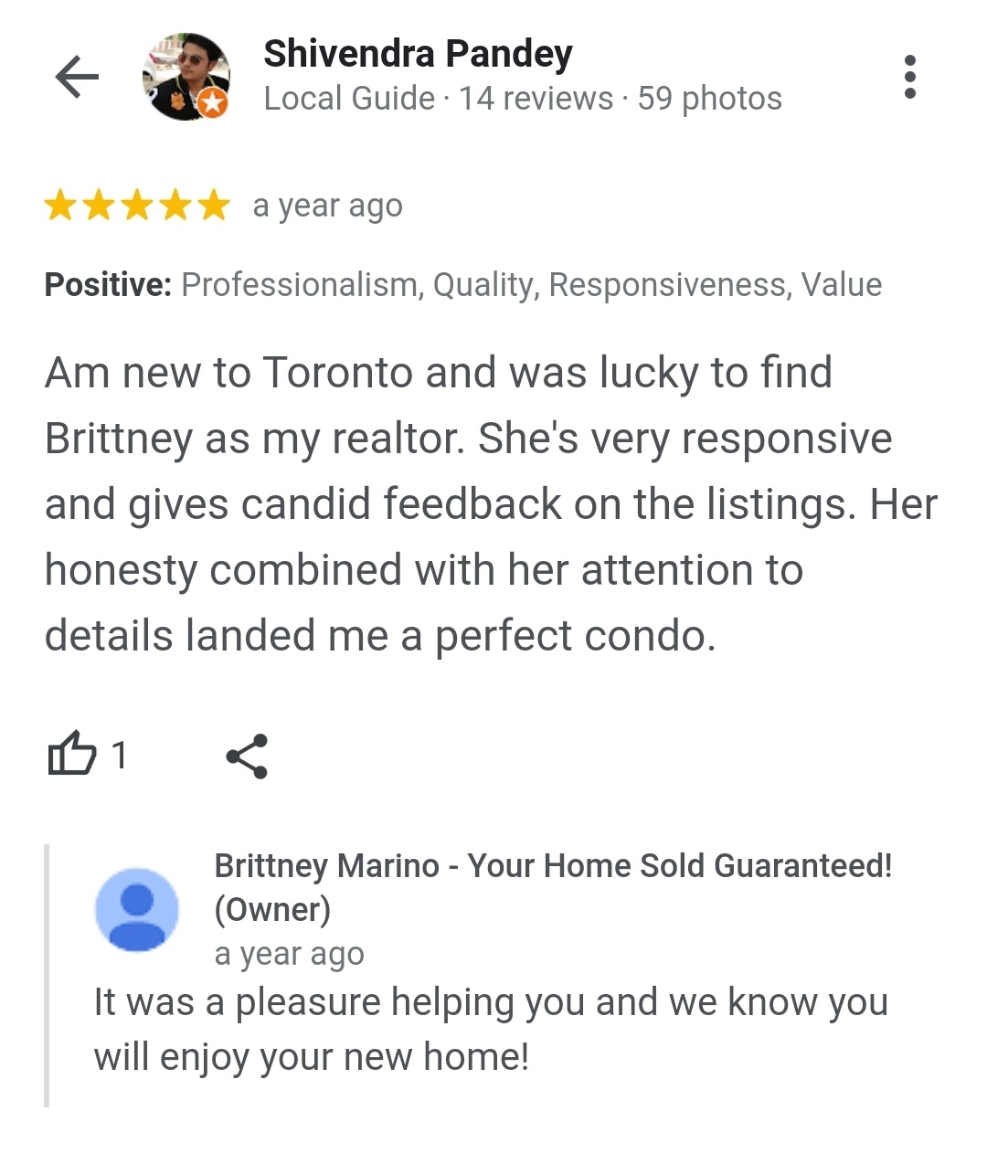 Brittney works full time servicing clients in real estate. She is exceptionally well at giving her clients a full service experience. She works in the Downtown core as well as the Greater Toronto Area and surrounding suburban neighborhoods. In addition to buying, selling and investing, Brittney helps relocation clients and tenants. She specializes in real estate marketing and offers client's many 'RISK FREE' incentives when it comes to their real estate transaction.