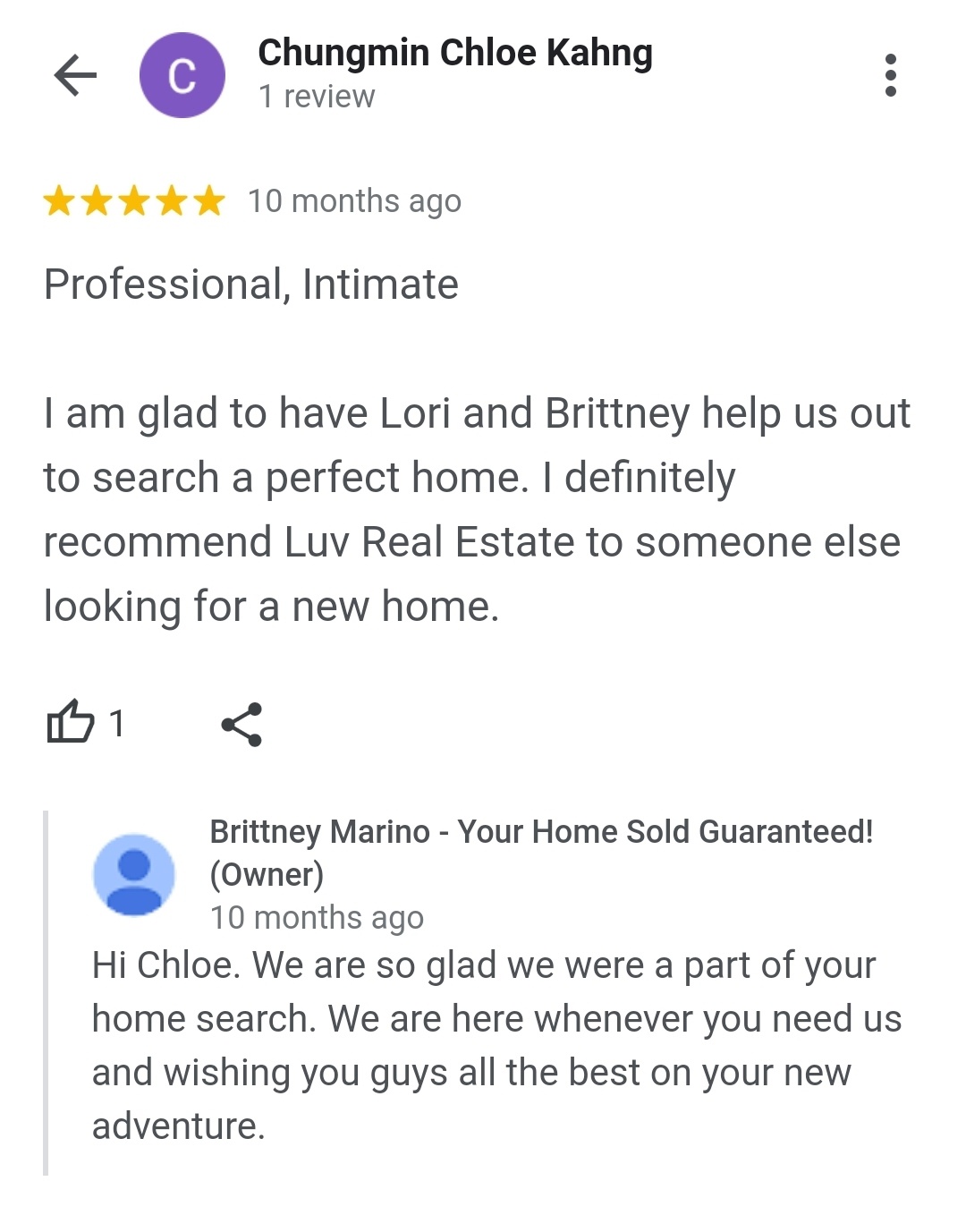 Luv Real Estate offers this unique Buyer Satisfaction Guarantee so you, the home buyer, are in control of the home buying process. We want you to know that we have a dedicated interest in helping you get the best possible home — one that you will love and enjoy for years to come.